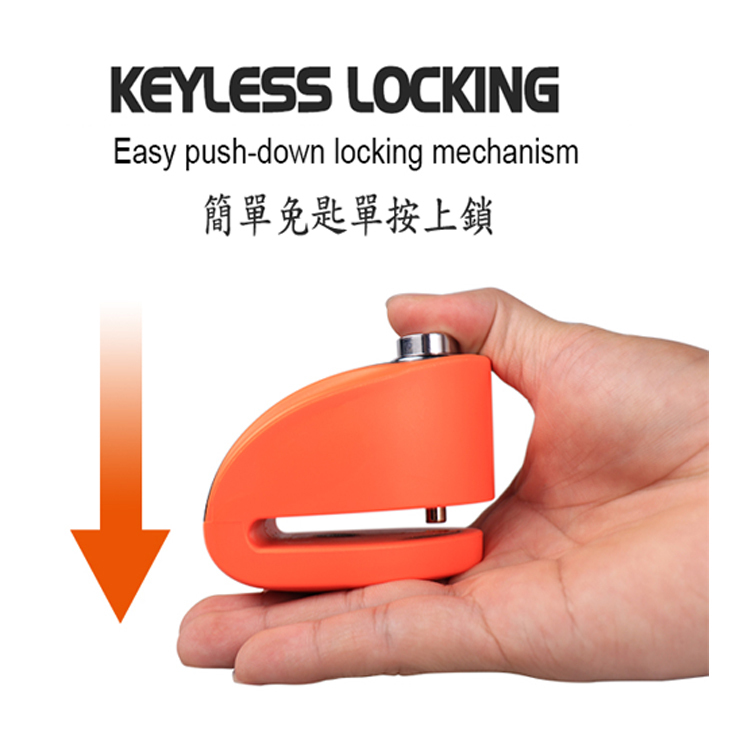 The lock body is made of manganese steel with PC+ABS on the outside. With the function of easy push down locking mechanism, light, safe and not easy to scratch and fade. Suitable for most motorcycles, bicycles and scooters.